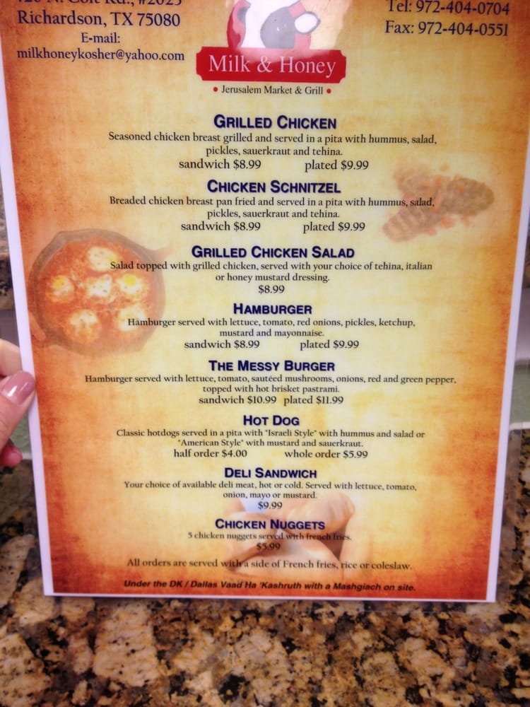 Located in Richardson, TX, Milk and Honey offers a delightful range of Middle Eastern cuisine in a cozy, casual setting. This family-friendly restaurant prides itself on using 100% fresh, certified Kosher ingredients, catering to both traditional and modern palates.